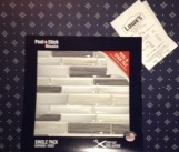 In the photo below, left brainers probably prefer the wallpaper background with a pattern of identical designs in straight rows. Right brainers probably prefer the random colors, sizes, and arrangement in the tile sample from Lowe’s. What’s your preference?